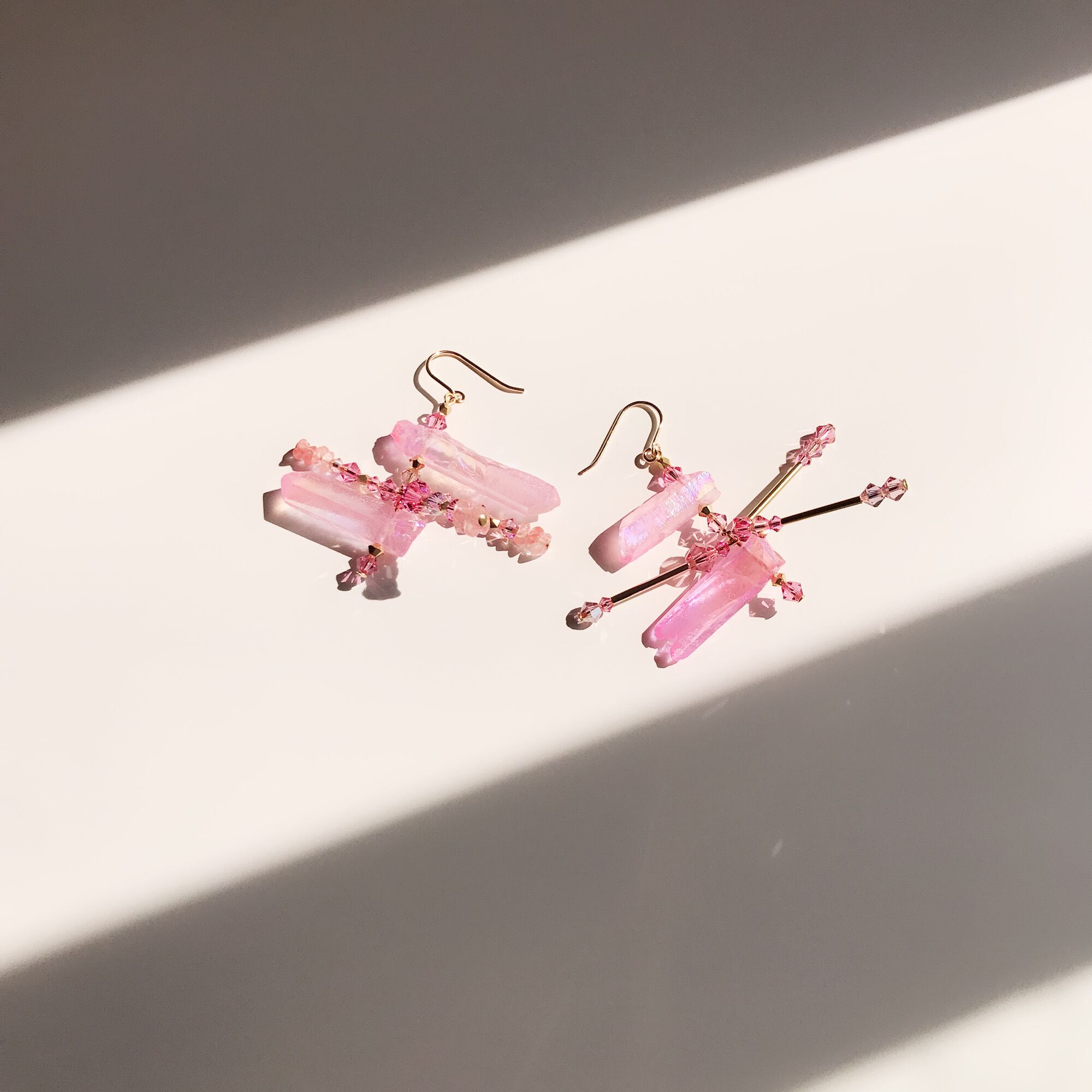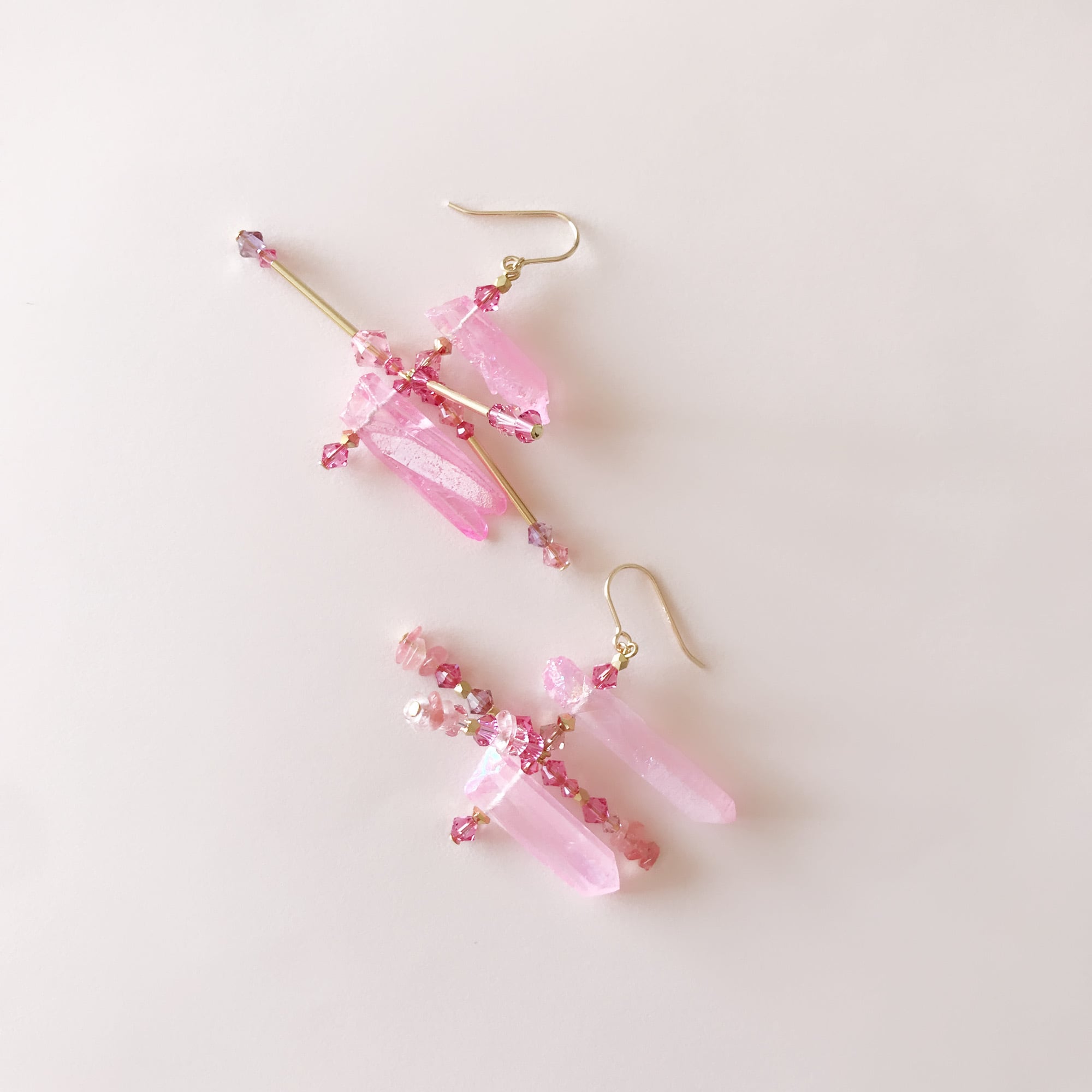 スワロフスキー・ビーズ、チェリークォーツ(人造石)と金属を組み合わせた