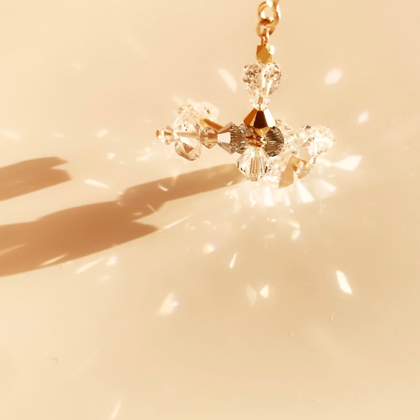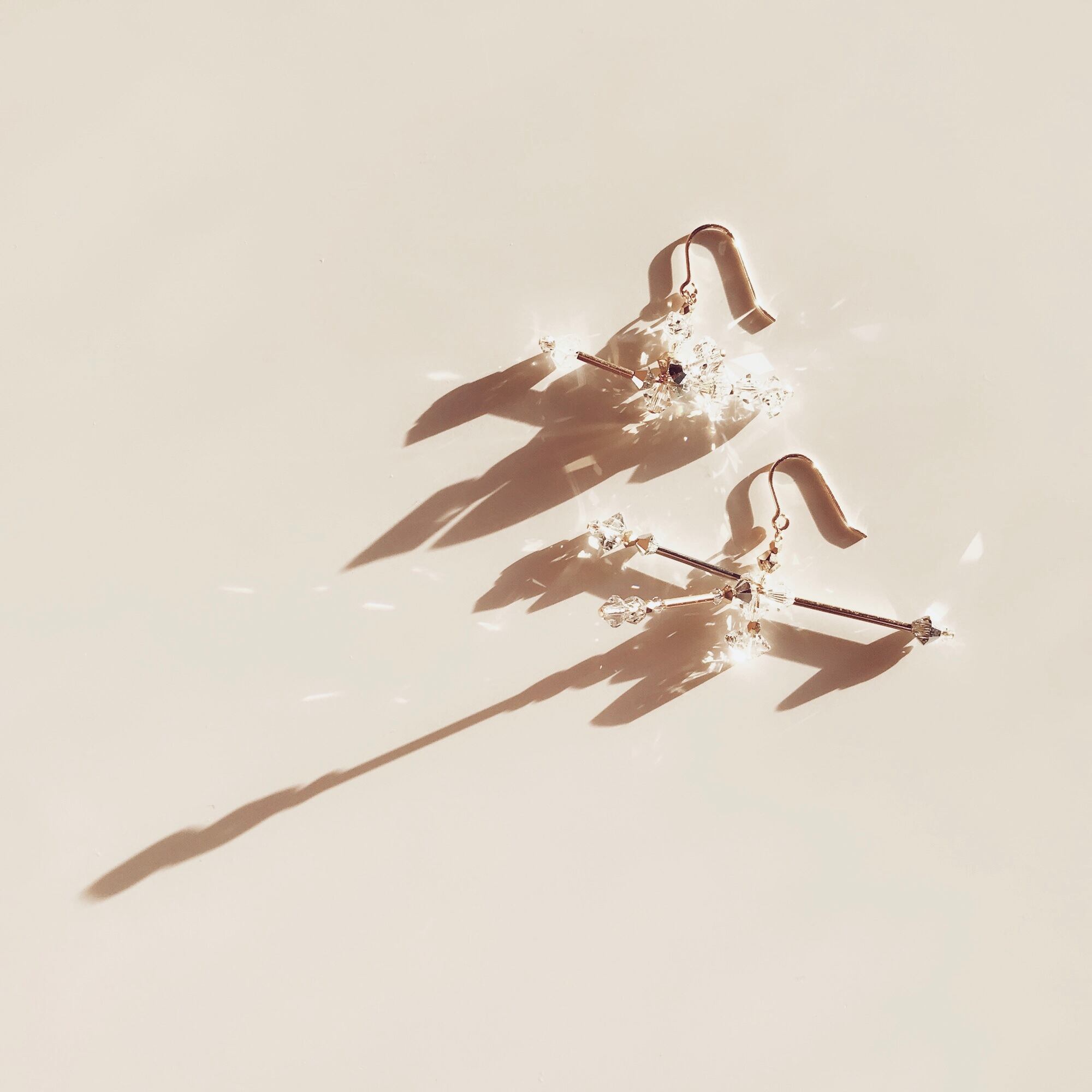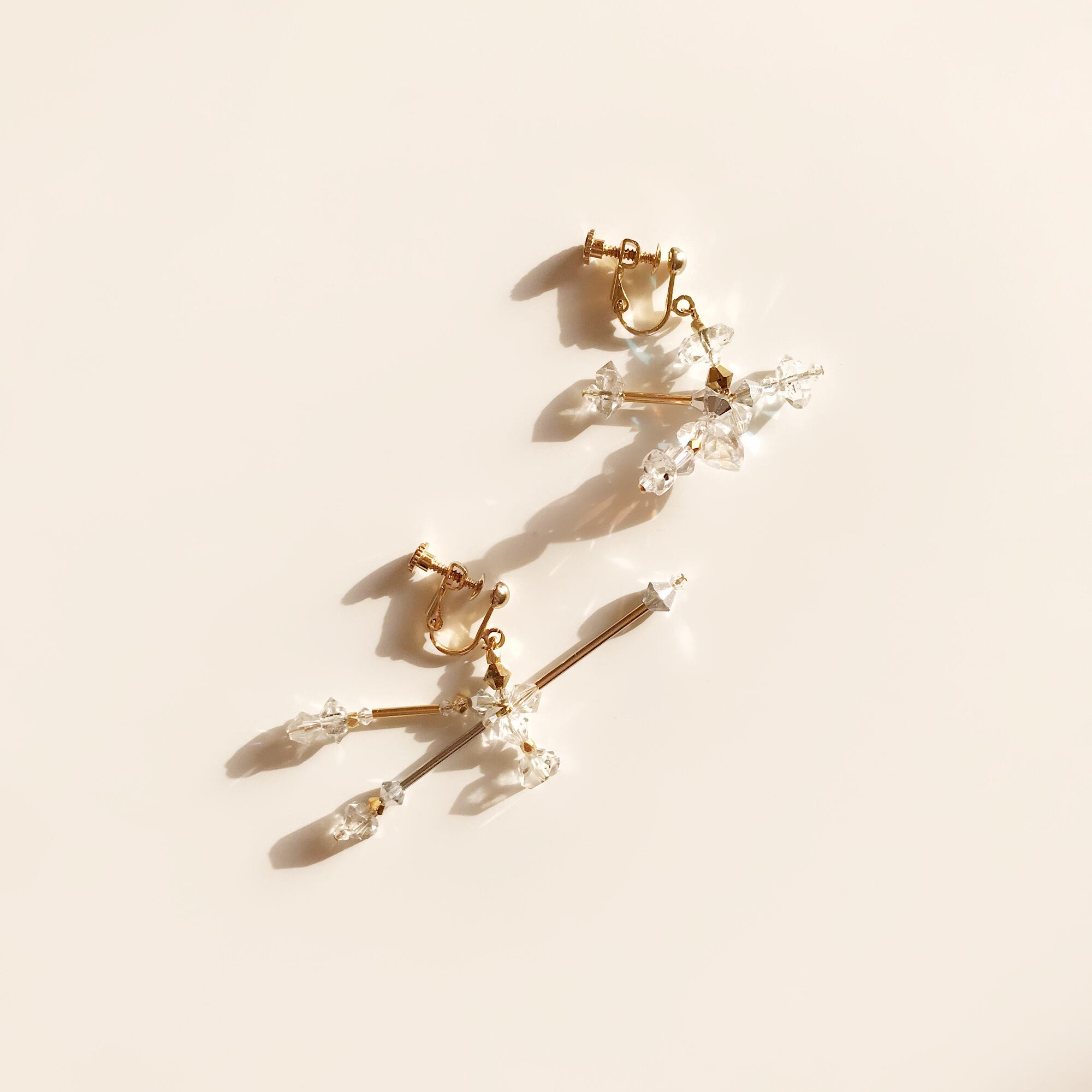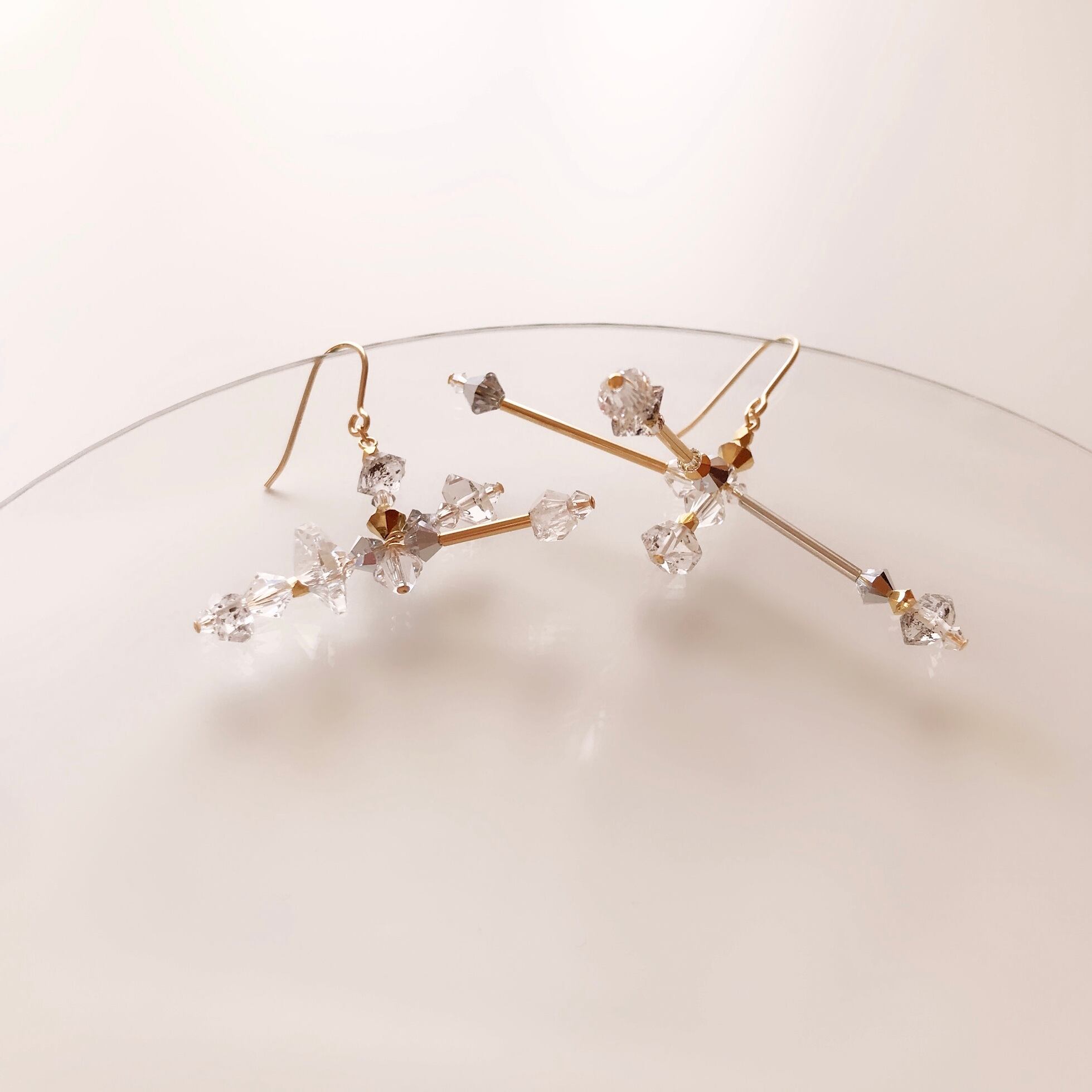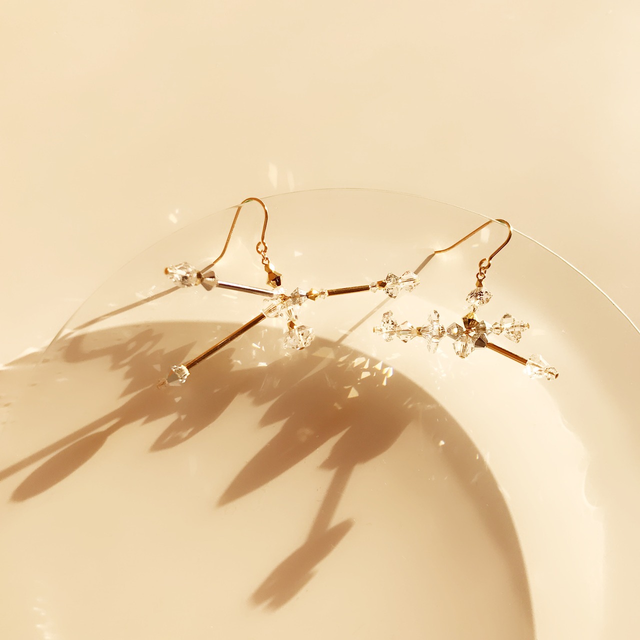 スワロフスキーの粒を立体的に組み合わせた耳飾りです。