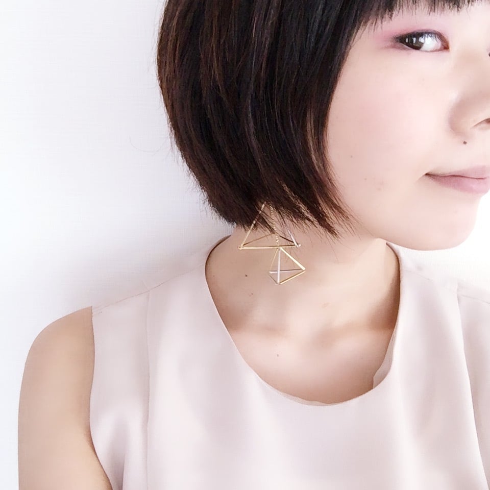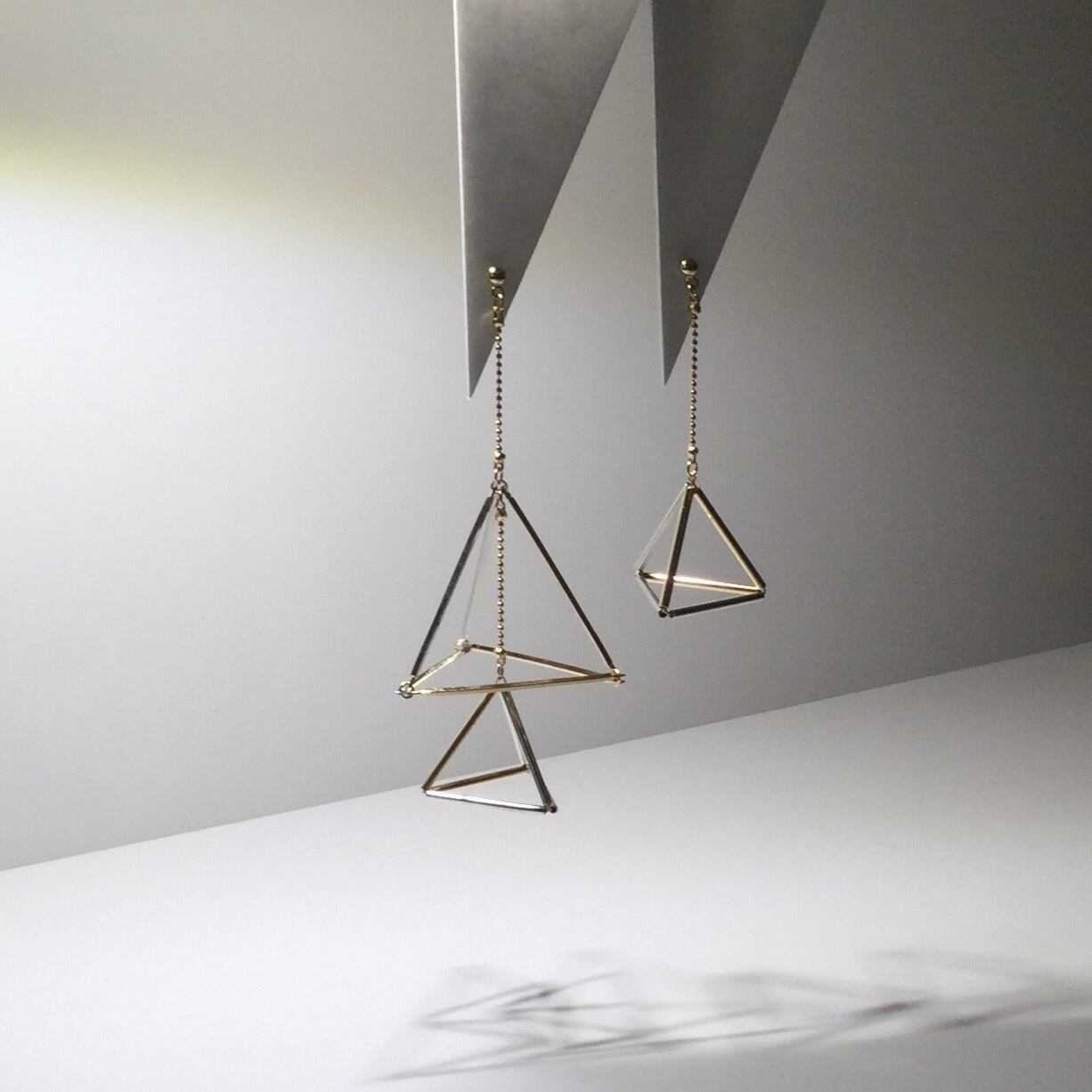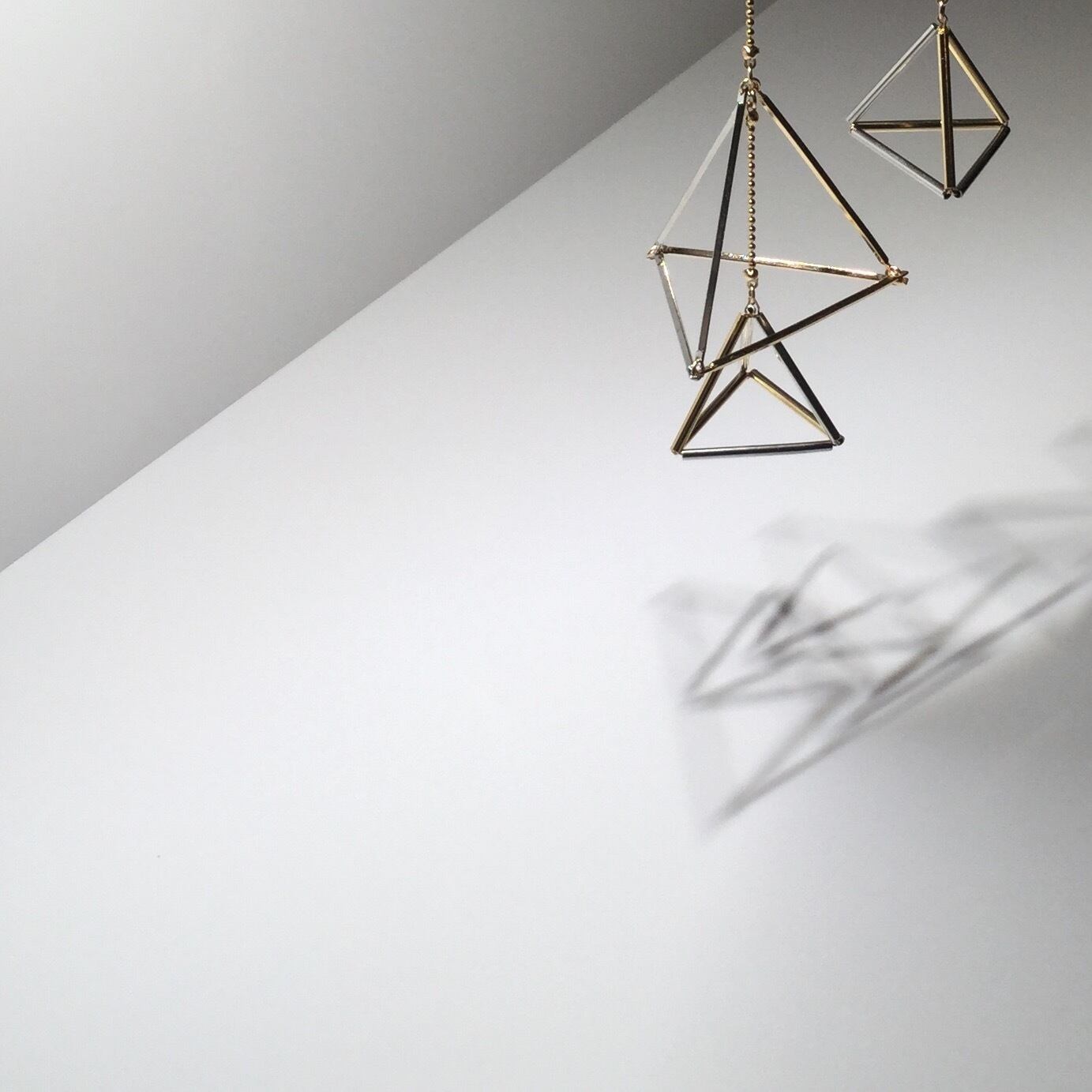 正四面体が集うこのアクセサリーを建築家バックミンスター・フラー(1895-1983)へのリスペクトをこめて、dymaxionと名づけました。