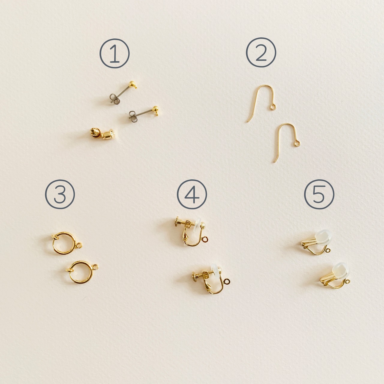備考欄に、ご希望の金具の種類【3枚目の画像に表示している①〜⑤の番号】を必ずご記入ください。